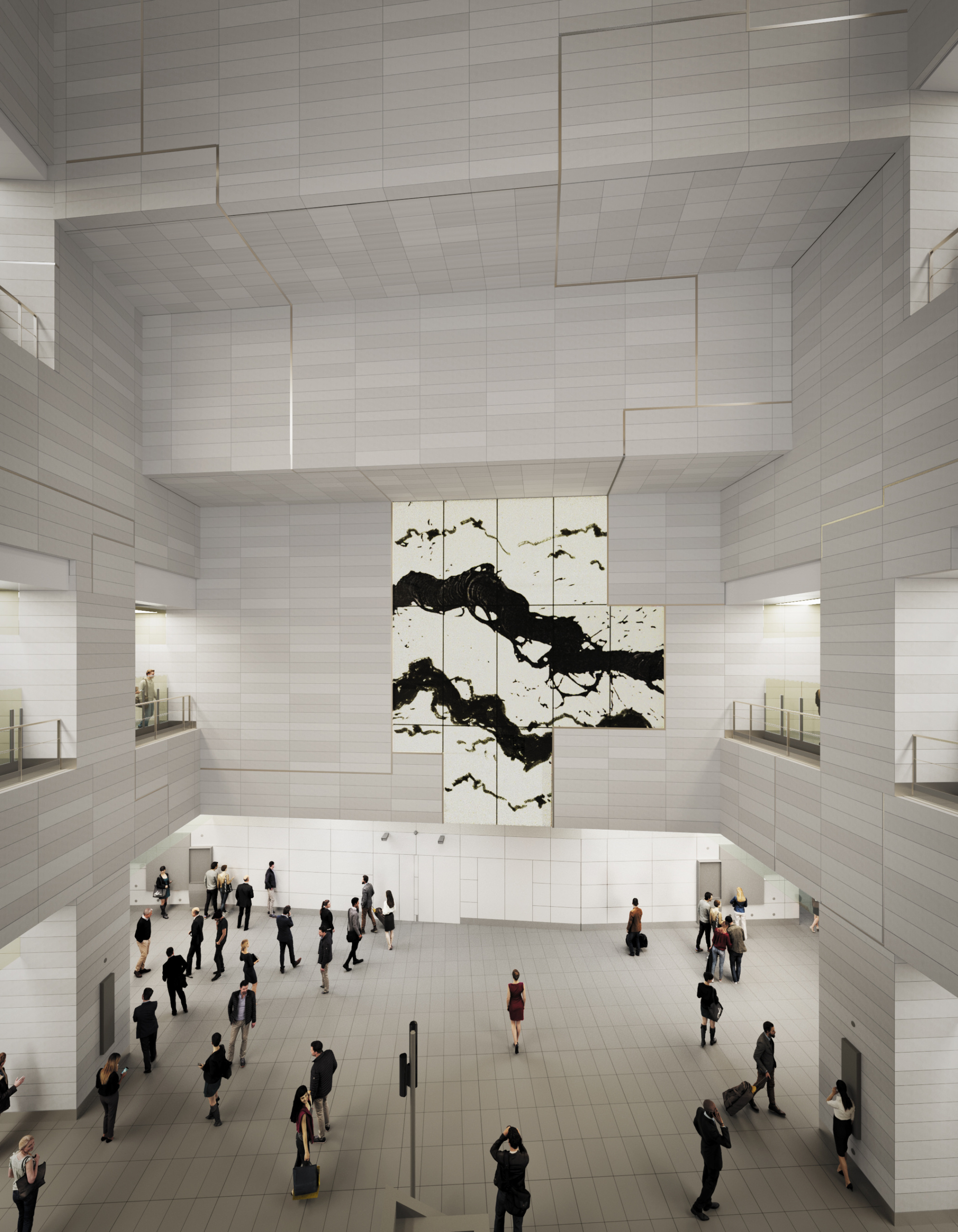 Dans le cadre du projet «TANDEMS, Artistes et Architectes», l’artiste Fabienne Verdier imagine un tableau telle une allégorie des couches géologiques composant le sol calcaire de la ville de Maisons-Alfort et pensée comme une fenêtre ouverte sur les entrailles du sol, accompagnant ainsi le voyageur dans son cheminement lors de sa descente aux quais ou de sa remontée.